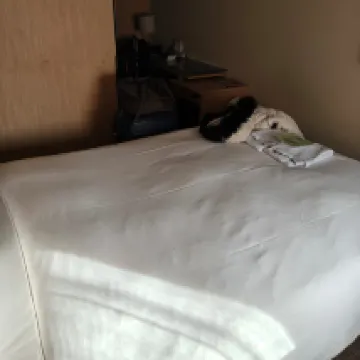 The room itself is on the smaller side. You can’t really open a large suitcase completely. Otherwise, it’s comfortable. The bed is great, the ventilation and plumbing worked perfectly. The only downside is that it was a bit dusty. Overall, though, it’s a really nice and convenient place to stay.