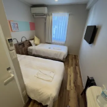 The room was incredibly small; there was no space to move around once a suitcase was opened. The 'double bed' was actually two single beds pushed together. Check-out is at 10 AM, and extending it to 2 PM costs an additional 2000 yen. The location is convenient, making it very easy to get to Shinsaibashi. Luggage storage is free. The front desk service was mediocre – no extra words or smiles.