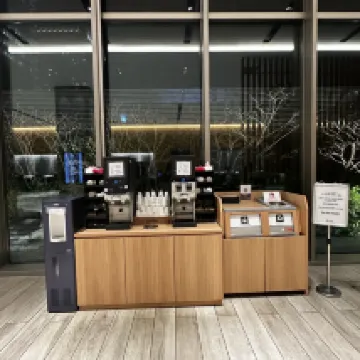 Check-in and check-out were both self-service at the machines, with hotel staff on hand to assist. The lobby is on the 9th floor of Yodobashi, making it incredibly convenient for dining, shopping, and getting around. While the room was small, it was clean and tidy. The most thoughtful touch was the hot water dispenser – a real bonus! Other free amenities like coffee and tea bags were available for self-service in the lobby.
