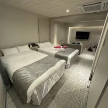 This hotel located right inside Shinsaibashi. It is 3-4 minutes walk to the nearest station I booked a twin premium room with 2 queen beds and able to accommodate a family of 4. It is spacious with 450 sq ft. and bathroom is wonderful if you care about soaking yourself in a bath tub. We stayed for 4 nights located few blocks down to Dotonbori and Shinsaibashi mall. Overall the hotel is good if you want to find a spacious room to stay with families.