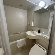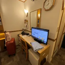The room was incredibly clean, with not a speck of dust in every corner! It had all the amenities you need, even a makeup mirror! Facial cleanser, makeup remover, lotion, cotton swabs, shower cap, and soap are all available free of charge at the front desk. Pajamas are also available.