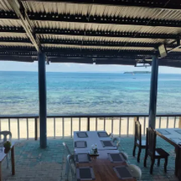 if you are planning on staying in the Oslob area and/or are planning on seeing the whale sharks there. The Island Front Resort rooms are pretty basic, but very clean and located right on the water. It was definitely a very nice treat to eat dinner and breakfast facing the clear blue ocean and Sumilon Island, which is another tourist attraction. The staff are very friendly and helpful. As a matter of fact, if you plan on going to see the whale sharks, the staff will arrange transportation for you (at a very fair price) and even fast track you on the boat line with a complimentary guide, which will save you time and eliminate some confusion when you get there. The food (both the dinner and complimentary breakfast) was very good and priced very reasonably. I was hoping for just a clean basic room to sleep in (which I did get), but the good and fairly priced food and being fast tracked on the whale shark line were definitely nice surprise bonuses!! 😊