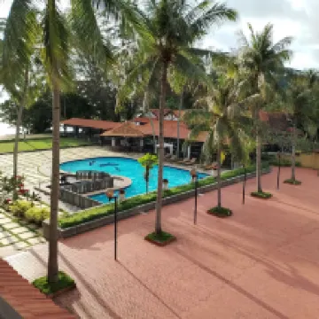 The hotel is a bit older, but it's still well-maintained. The swimming pool is very spacious, though the 5-foot depth markers are quite faded and could pose a safety hazard; it might be worth looking into. The chalets are lovely and roomy, perfect for families. Restaurants and a local market are all within easy walking distance. The absolute highlight, though, is the beach – waking up to a therapeutic stroll along the shore is incredibly refreshing. The overall vibe here is fantastic. Thank you, Puteri Bayu, for hosting us.