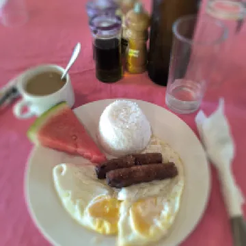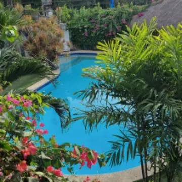 Quite a good small hotel, the price-quality corresponds. The territory is well-kept. The pool is clean. The staff is friendly. The rooms were cleaned every day. Water 2x0.5, if not enough, you can fill it in the cooler, as well as hot water. At our request, we were provided with a kettle. Breakfasts on the menu of two types - Filipino and continental, without vegetables and fruits (except for 1 piece of watermelon per person). One big minus is the neighbor's rooster crowing every morning. It takes 10-15 minutes to get to the beach. The hotel has an Italian restaurant. We ordered pizza, delicious.