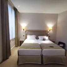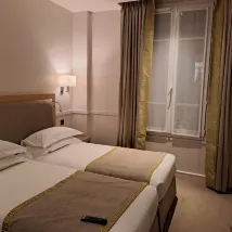 Excellent stay: excellent welcome (kindness, service and touch of humor). The room was clean and the bedding was excellent, large enough for 2, a bathroom with a bathtub. We were on the 2nd floor at the end of the corridor on the courtyard side, so calm and serenity. You can perhaps hear the sound of the doors closing in the morning when customers leave, but frankly it lasted 2 minutes.