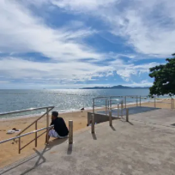 The area is a great spit to base yourself, quiet and peaceful, 1 minute from the beach with bars, reaturants, convenience stores and massage shops around the corner. The only issue is transport, youll need a taxi app to get around.