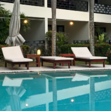 I cannot recommend this place enough! The view is absolutely breathtaking - lush green hills surround the serene poolside, making it feel like a private slice of paradise. The vibrant flowers and the beautifully maintained garden add a pop of color and tranquility to the scenery. Relaxing in the pool with this stunning backdrop was the perfect way to unwind. The pool itself is crystal-clear, clean, and refreshing, with plenty of space for lounging. The nearby wooden loungers and peaceful ambiance make it ideal for both relaxation and quiet reflection. If you're looking for a place to escape the hustle and bustle, this hidden gem is everything you need and more. I'll definitely be coming back! The staff at Serenity Lakeside Resort are warm and welcoming. Special thanks to Clyde, who was consistently attentive and ready to assist throughout our stay. His professionalism and dedication ensured that our experience was both relaxing and enjoyable.