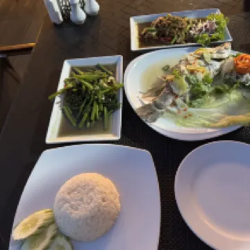 We ate in their rooftop restaurant, the food is not bad. We did the steamed fish in lime sauce.