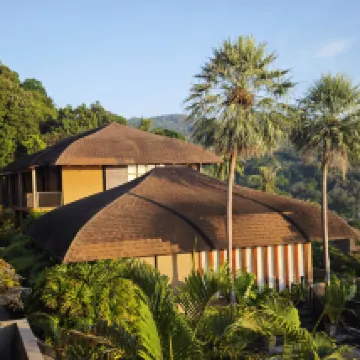 This resort is nestled on a quiet hillside near Karon Beach, offering a peaceful escape (about a 15-minute walk from Karon Circle, with a shuttle available hourly to Karon Beach). Built into the mountain, it boasts beautiful views. There are eight buildings, each four stories high, ensuring every room has a great view. While the hillside is steep, there's an elevator for convenience. The hotel service is excellent, and the staff are very friendly. The food at the restaurant is delicious. The water quality at the hotel is good, so there's no need for an additional filter shower head. Overall, it's a fantastic resort for families and couples! I'll definitely be back!