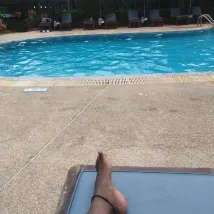 An okay resort. Beautiful access to the beach (Just credos the road--3 mins and you are there. The rooms are nice, comfy and big. we were on the second floor so we didn't have a pool or ocean view but the room was still awesome to wake up to. Reception is friendly even though they couldn't check us in before 3. There are two main restaurants hangouts. pool; one and roadside one with beach across.We enjoyed our stay here. The pool is magnificent and the food it very very pretty decent. No 711 closely nut they have another mart.
