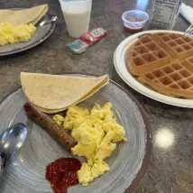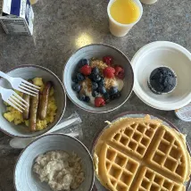 Nice scenery but next to the highway, it's noisy at night, and I'm not used to the breakfast