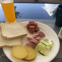 - [ ] Breakfast is not a buffet, only 3 types, scrambled eggs with bacon, beef and pork. In principle, we are not picky, it is enough for us, but those who stay here for a longer time will go crazy from such a choice (but we found a very tasty cafe with breakfasts, though you need to walk a little, more on it below)