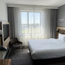 I can recommend the hotel. First of all, close to the airport. Quick check-in procedure. Small room but definitely enough for 1 night. Soft light, clean bottled water on the table. Comfortable beds.