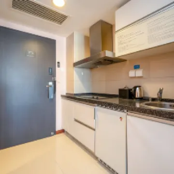 Very accessible location, just next to Wusi Square metro station. Some hotel rooms are equipped with kitchen and washing machines, good option to travel light. It's like a local service apartment. Think they don't have swimming pool though, not sure as don't intend to swim. Love the hotel breakfast especially millet porridge. Hotel staff are very friendly. Will return to stay there in my next trip.