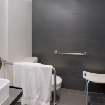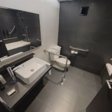The room was spacious and clean. The shower had no door, which made it difficult to use, but overall it was nice and clean.