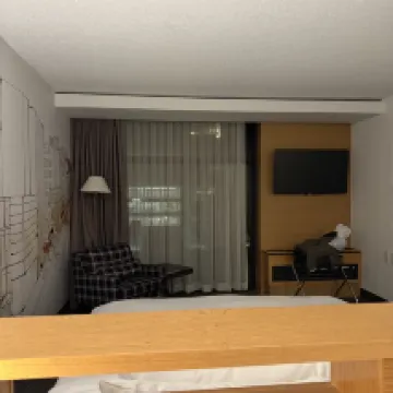 The hotel has a fantastic location with its own underground parking and sauna, and the rooms are very clean! The hotel staff are extremely friendly and helpful.