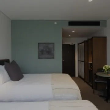 Extremely close to the airport, just a five-minute drive to the hotel. Free parking is available, and there's a Woolworths and other supermarkets downstairs, which is very convenient for shopping.