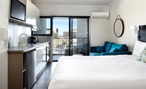 酒店位置在randwick鎮中心,吃飯交通都非常方便,房間是公寓式的,有電磁爐哦洗衣機等,設備非常方便,還有陽台。