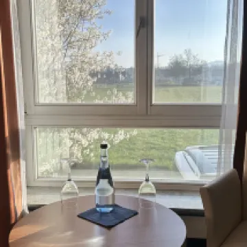 The hotel is very old, not many guests, and very quiet. Breakfast is very simple, but it is in the transparent sun room. Let's live together.