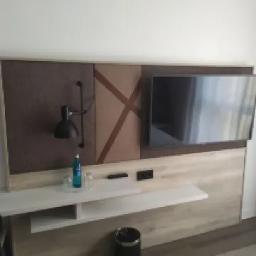 Sufficient power sockets in the room and bathroom, sufficient storage space, comfortable bed