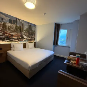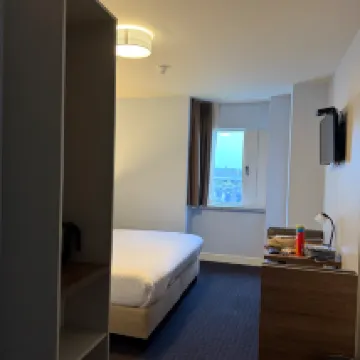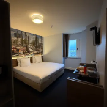 I rented an apartment nearby but it wasn't ready yet, so I stayed at this hotel for two days after landing. It's very close to the Central Station; just head right from the north exit, walk straight until you hit the main road, then turn left and you're there. It's about a 15-30 minute walk, depending on your pace. The room facilities are simple and clean. I needed to print a couple of pages temporarily, and the front desk staff kindly printed them for free. The pictures show the surrounding street and neighborhood. Right across from the hotel, you can catch various buses that take you downtown, and you can get off right at the hotel entrance on your way back. Tapping your credit card for boarding and alighting is very convenient. Within about a 15-minute walk, there's a Turkish supermarket, an Aldi, and an AH supermarket, so finding food isn't an issue, but I didn't see any bakeries or coffee shops.