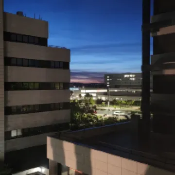 Hotel close to the metro and buses, with plenty of shops and restaurants nearby.