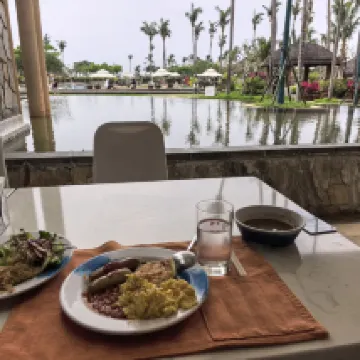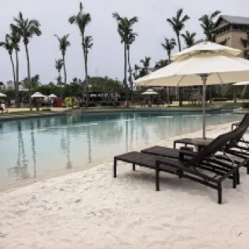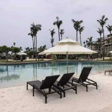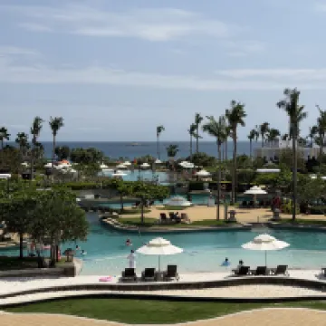 The room was really great, with a fantastic and expansive ocean view, although it was quite a walk to the lobby. The public areas, including the pool, landscaping, architecture, and facilities, while not sprawling, were compactly laid out and cleverly designed, making them very beautiful and pleasing to the eye. The beach was also excellent and quite popular. The hotel's guest relations service was thorough and attentive, which was much appreciated. I also liked that the breakfast service included staff escorting guests to their tables.