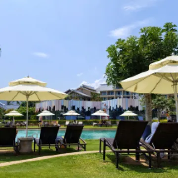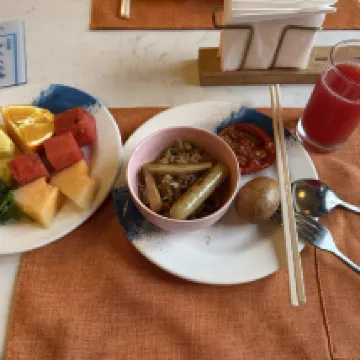 The environment here is absolutely amazing, with a private beach and a private pool. A special thanks to the front desk lady who kindly upgraded our room for free! The pool water temperature was perfect. It's a must-stay for couples, and the price is reasonable considering the excellent facilities. Highly recommend! We didn't get to try breakfast though, as we overslept, haha.