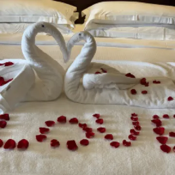 Our butler Emma added me on WeChat even before we arrived! She heard it was our honeymoon and upgraded our room for free, even decorating it for us! The sea view room was absolutely stunning, and the location was fantastic. The Hilton's service attitude was excellent too! Highly recommend! Plus, we're both terrible swimmers, and she even helped us exchange our swimming rings. Super satisfied with Emma!!!!