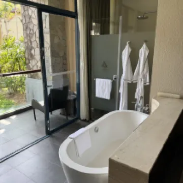 The hotel's public areas are beautiful! My friend and I booked this suite, and the room was spacious with a great view – highly recommend this room type. It was definitely worth the trip. The only downsides were the limited minibar selection, and perhaps because the hotel has been open for a while, there was a slight dampness, which is hard to avoid. If I go to Sanya again, I would still consider staying here.