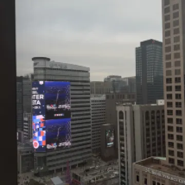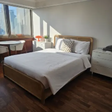 The room was spacious and the hardwood floors made it feel really clean, which I loved! The interior design was also beautiful, and being on the 20th floor, the view was fantastic. You can barely see Deoksugung Palace though; it's pretty much just a city view, haha. The bedding was comfortable and the bathroom was clean. The TV was big and having OTT services was a nice bonus. Soundproofing wasn't great, though. The staff were all very kind and the common areas were really well-maintained. I'd definitely want to come back again!