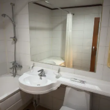 Bad condition of everything - walls, floor, bathroom. Not comfortable pillows. Nice district, but very far from city centre. But science museum is nearby. Service staff at reception is very helpful and polite always!