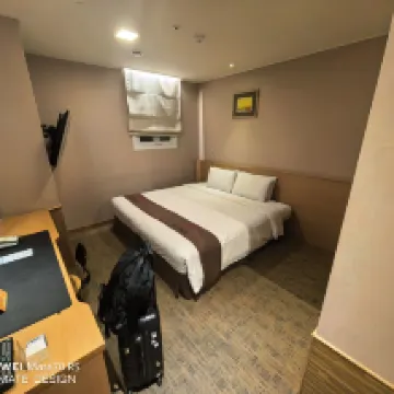 The room, though small, was well-equipped. The location is excellent, very close to the subway station and the airport bus stop. It's also super convenient for exploring Myeongdong and the duty-free shops. Plus, the guy at the front desk was really enthusiastic and gave us great tips on places to visit.