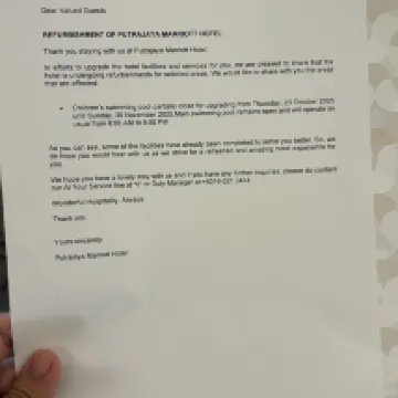 We chose to stay at Putrajaya Marriot as we had a splendid experience last year. However this year we were disappointed when we found a letter informing about the kids water play has been partially closed. Hence we plan to schedule our swim day on 1st Dec before checkout. And guess what, we were given another rude shock when we found out the whole waterplay area will be closed 1-4december. We only know about the closure upon reaching the swimming pool site. We were not informed of the upgrading works prior to our arrival even though hotel send us a welcoming email in mid Nov. We made a booking on trip.com very early and we could’ve picked another hotel to stay if we knew about the upgrading works.