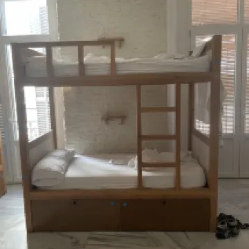 This is my best stay during my entire trip in Spain. Spacious kitchen, alll equipped cookware, all day free coffee and tea offered.besides, there is a cute terrace. Even though it is a shared room, it is quite spacious, and the 28 baggage can be stored in the locker under bed. And the staff are nice and friendly. Highly recommended!