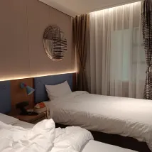 When we checked in, they helped us choose two rooms together, which was very convenient. The hotel also offered free late check-out. The rooms were nice, the facilities were good, and the service was warm and friendly with smiles. There was also free laundry service on the first floor. It's 7 kilometers from Lujiazui, which is very convenient.