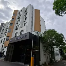 The hotel is in a nice and quiet neighborhood. It is clean and new. The there is a nice stream and pedestrian path behind the hotel where you can walk or jog. The staff is very friendly and helpful. They assisted with a lot of problems and as a foreigner I really appreciated that.