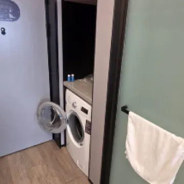 I was on a business trip and needed a hotel nearby, so I stayed here for the first time, and it was a fantastic experience! The small room had everything you could possibly need – a washing machine, dryer, microwave, and even an induction cooktop! I feel like I've fallen in love with this type of hotel after this business trip. It's also perfect for families with kids, as you can easily prepare baby food right in the hotel! The front desk staff and cleaning ladies all had excellent service attitudes. This was a really great experience overall!