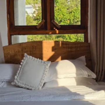 Our stay at this beachfront B&B was an absolute dream! The moment we stepped into the room, we were charmed by the warm, rustic wooden design. The rattan hanging lamps and oar decorations perfectly captured the essence of the seaside, beautifully complementing the lush green mountains and ocean view outside. Sunlight streamed through the wooden window frames onto the bedding; the pure white sheets were incredibly soft and skin-friendly, melting away all our travel fatigue the moment we lay down. The room was spacious, and the circular wooden platform paired with a straw-woven rug created an amazing ambiance, perfect for photos. The overall value for money was incredible, and I'll definitely choose this place again on my next beach trip!