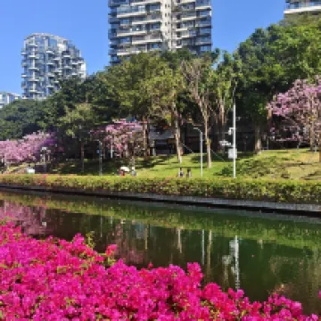 This two-bedroom, one-study apartment was very comfortable for our family of four. The surrounding area is lovely – right outside, to the right, there's a charming path lined with flowers that leads all the way to Shenzhen Bay Park. It's a popular spot for people to run and exercise in the mornings. There are also plenty of restaurants nearby, which is very convenient!