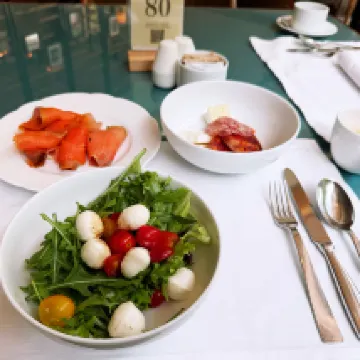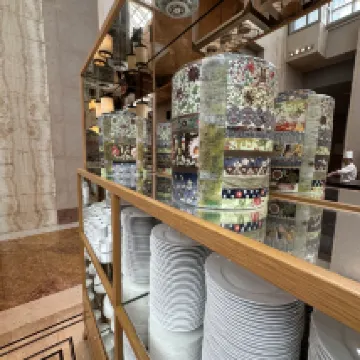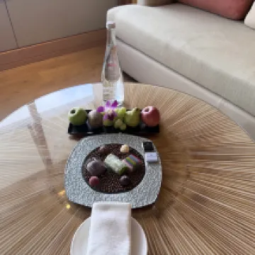 I'm always impressed with the service at the Ritz! It was only about ten Singapore dollars for a ride-hailing car from the airport, and what's really amazing is that the lady at the door knew my last name the moment I stepped out of the car. My room had plenty of bottled water and a complimentary mini-cake. I guess they didn't notice my note before check-in, so there was no greeting card initially. But then I went to Marina Bay Sands, came back, and they'd sent another cake with a card attached! 🥹 The breakfast was decent, nothing as amazing as some people say, but the variety was quite good with dishes from various Asian cuisines. I'd give the taste a 6 out of 10 (the oatmeal cup was delicious!). All in all, I'd definitely stay here again.