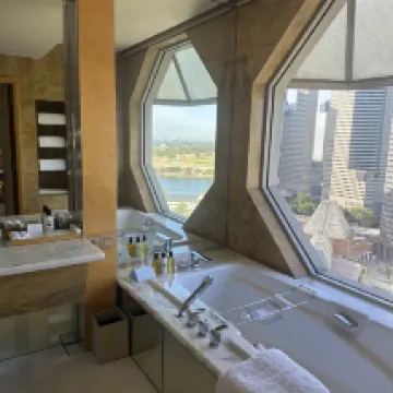 The room was quite spacious, but the design felt a bit dated. The Ritz-Carlton service, as expected, was excellent. The hotel is conveniently located very close to the Promenade MRT station. The view of Marina Bay was also great, though the construction site in front of the hotel was a bit of a drawback.