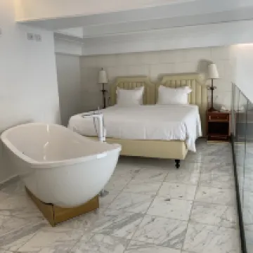 The hotel is right by the sea, with a good location and valet parking for 15 euros a day. The service staff is very enthusiastic, but the speed is slow... The lobby is beautiful and large. It was formerly a post office and was converted into a sub-brand of Marriott. The room was upgraded to a loft suite. Although it is very spacious, it is a bit useless to go up the stairs to get to the bed... However, there is a vanity and toilet on the second floor. Next time I come, I will consider staying in a hotel or B&B in the old town that is closer to the beach and has a balcony. It feels very holiday...