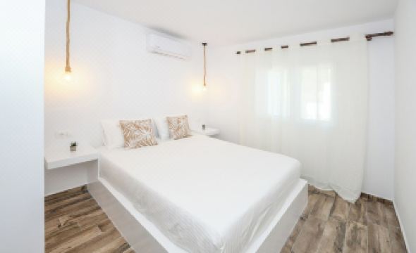 The apartment features elegant, cozy interiors designed with refined simplicity, natural tones, and quality furnishings. Large windows fill the space with light and frame serene views of the Aegean Sea. Whether you're enjoying your morning coffee on the terrace or unwinding in the living area, every corner promotes a deep sense of calm.