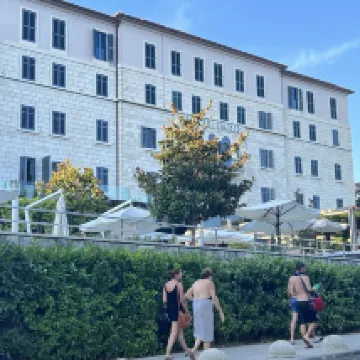A modern hotel with nice amenities like a well equipped gym and a swimming pool. Location is a short walk to the Old Town and next to a public beach. Staff friendly and accommodating