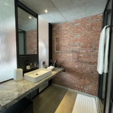 Spacious room with well thought design. Wooden flooring, showering area is huge and toilet bowl has the cleaning facility. Aesop hair, body and hand wash are great! Though the hostel is further away from the train station but its near the food and shopping areas. Once u get the hang of how the bus works and where the bus stops are, this is definitely a good place to stay! Great view facing the tainan art museum.