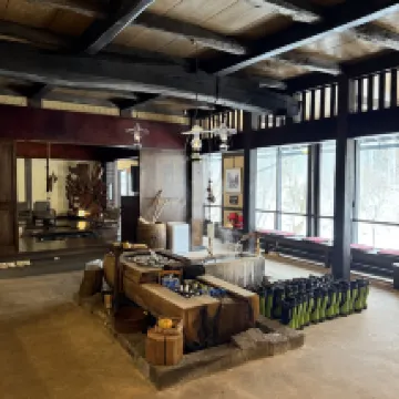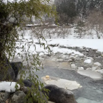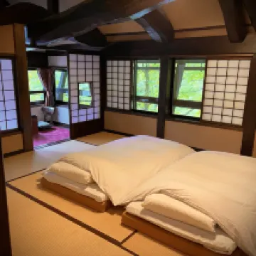 The resort is located in a forested valley is stunning, next to a rushing river. Natural mountain hot spring water is channeled into 7 lovely outdoor onsen baths, as well as ensuite baths.