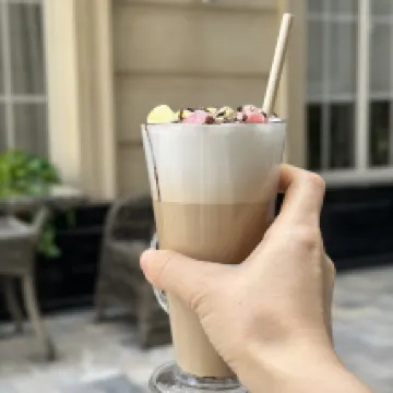 The hotel grounds are very beautiful, as if you were on a small street in Italy. Once a violinist came out onto the balcony. It was very nice.