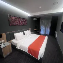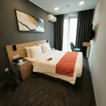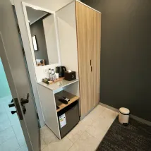 The hotel is new, the rooms are standard, there is enough space. The only negative is that the room lacked a chair or ottoman(