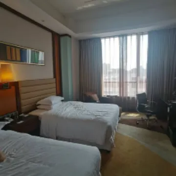 The room size was good. The twin beds could be pushed together to comfortably accommodate a family of three. The hotel offers views of the Chow Tai Fook Financial Centre, and K11 is just a 10-minute walk away. Both the Maritime Museum and the Teda Aircraft Carrier are approximately a 30-minute drive from the hotel. Free parking is available, and we also took our kids for a swim. Overall, it perfectly met our family travel needs.